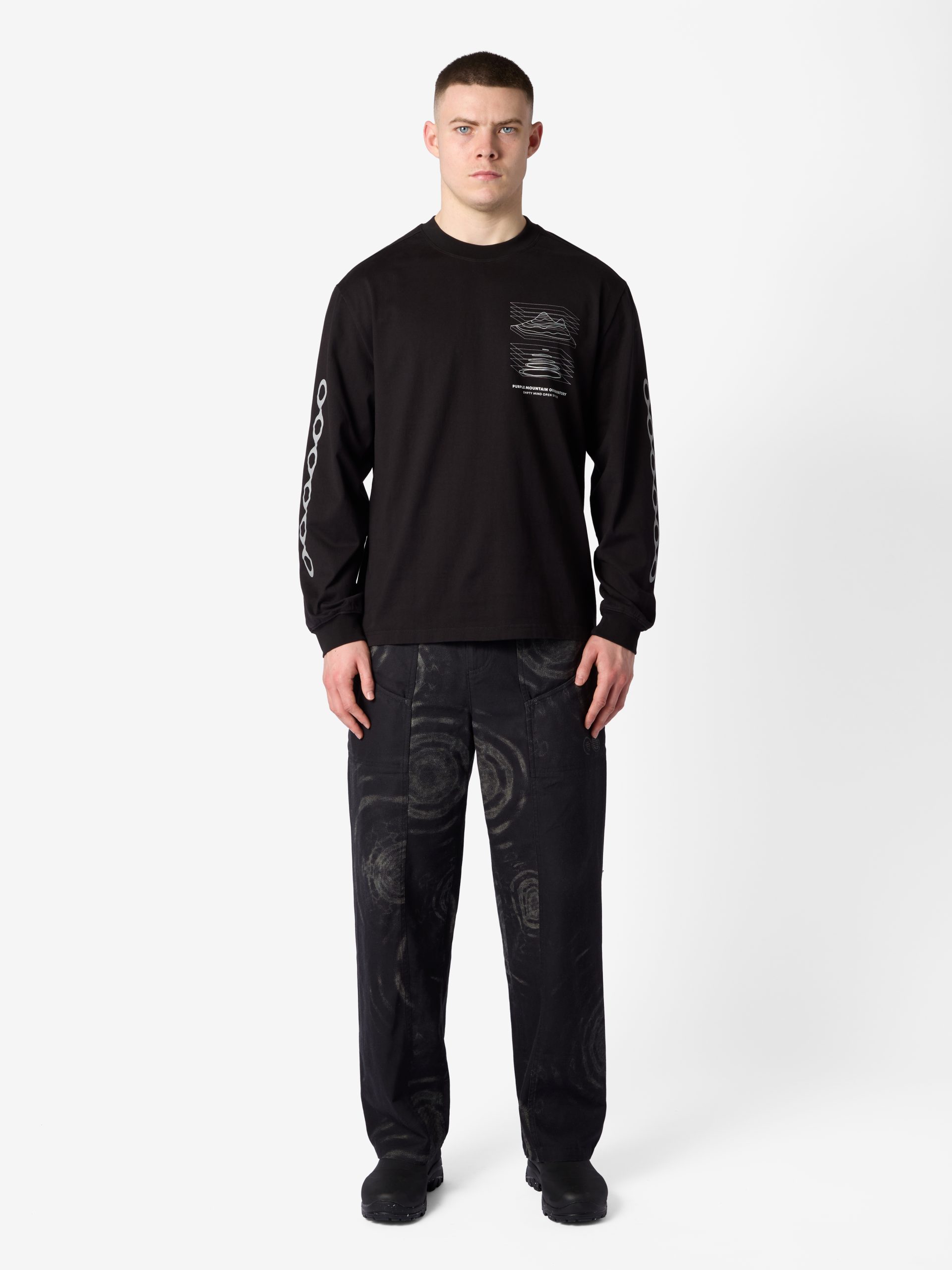 Long-sleeve T-shirt made from a super-soft heavyweight 260gsm long-staple cotton. Featuring our ‘Projections’ graphic.