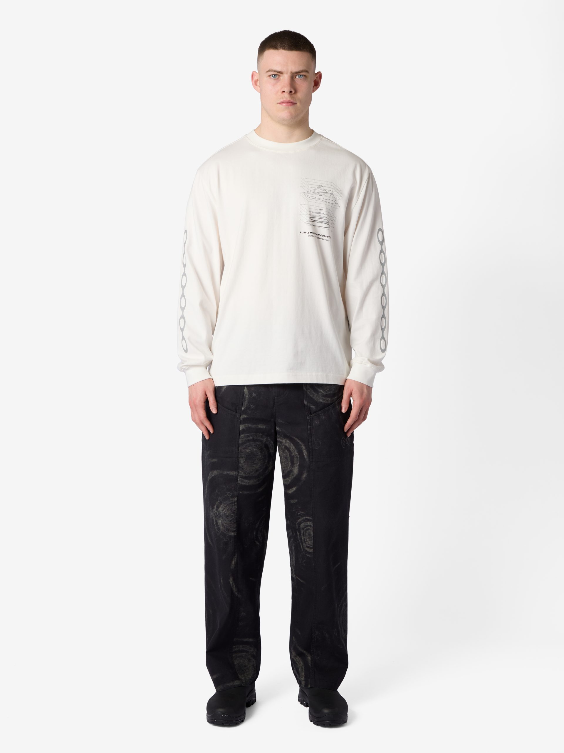 Long-sleeve T-shirt made from a super-soft heavyweight 260gsm long-staple cotton. Featuring our ‘Projections’ graphic.